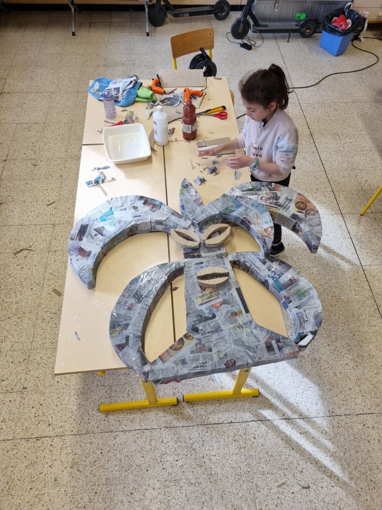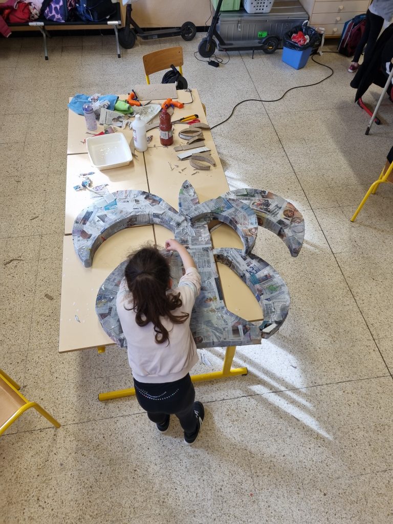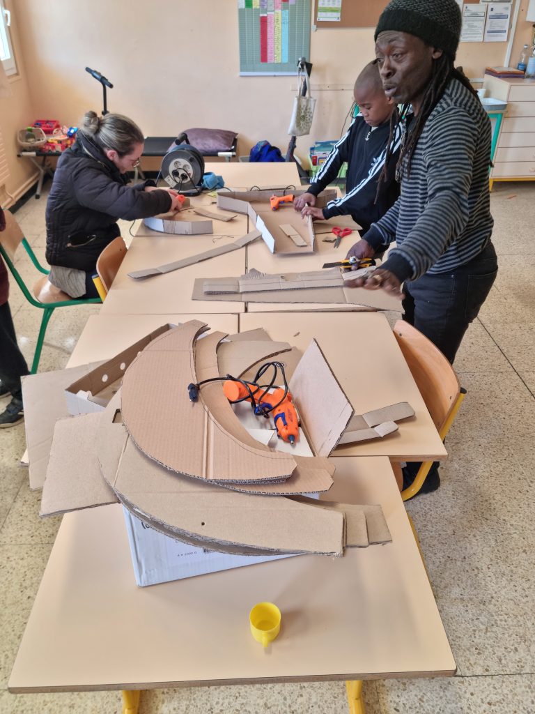 L’idée de marionnette fut celle des enfants, principalement: Laure (CP), appuyée par ses copines. Jimmy en avait profité pour les guider vers une forme de marionnette spéciale, particulière, qui lui tenait à cœur depuis sa propre enfance.