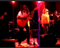 Après une scène endiablée comme d'habe, ma "Petite soeur" se jete sur moi au pied du podium...(On ne s'était pas revu depuis 2021 à cause du "Co-Cod") ! Mdr ! L'instant d'après, c'est son puissant Synthé/Organiste, mon très brave "petit frère" Elvis Megne (meilleur clavier du coin) qui lui emboîte le...'plongeon". BRAVO MES 2 VAILLANTS PETITS ! C’ÉTAIT UN RÉGAL COMME TJRS ! Notre frère commun, le très célèbre Bertrand Gattegno (Meilleur Camera de toute l'Occitanie...paix à son humble âme depuis Juin 2024), était aussi l'heureux bénéficiaire de tous ces illustres câlins !