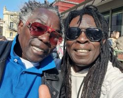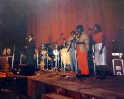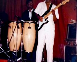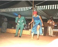 A peine sa dernière note jouée, Elvis court au bas du podium me couvrir de hautes gratitudes simplement pour ma discrète présence au magnifique concert qu'il vient de terminer aux côtés de la Diva Emma Lamadji, Voix d'Or de toute la région.