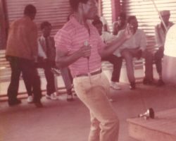 L'Ancien Directeur Adjoint et Secrétaire d'Orchestre Jimmy Curtis vient d'arriver au pays pour ses vacances de Noël 2015. Son ancien groupe "Mutzig Band" des Brasseries du Cameroun (Meilleur groupe du pays sur plusieurs décennies) ne le loupe pas ! Il est coopté d'office: Star-surprise de la longue soirée: Animation - Ventes de la multinationale. Son répertoire spécial renaît des cendres ! Souvenirs qui font frémir ses gars. C'est l'euphorie totale sur scène, pour un public en transe et un site provisoire qui vibre durant des heures interminables ! La poussière n'est pas en reste, sortie de son sommeil par des milliers de jambes agressives, frénétiques, endiablées ! (Photos floues). QUEL MOMENT FÉERIQUE !